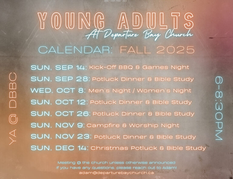 Most of all, we want to see every young adult not just connected to a group, but rooted in Christ—and actively invested in the life and mission of Departure Bay Baptist Church.